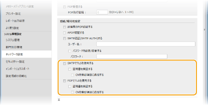 SMTPサーバーやPOP3サーバーとの通信の暗号化を設定します。