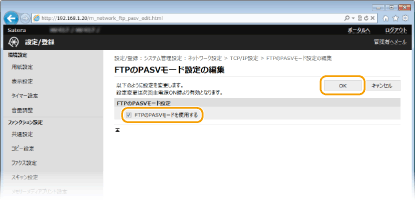 FTPのPASVモードを設定するかどうかは、お使いのネットワーク環境や送信先のFTPサーバーの設定によって異なります。詳しくは、ネットワーク管理者にお問い合わせください。