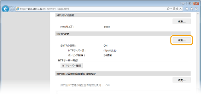 SNTPはネットワーク上のタイムサーバーを基準にして時刻を調整するためのプロトコルです。LDAPサーバーへのアクセスでセキュリティー認証を行うときなど、本機とサーバー間で時刻を同期させる必要がある場合に使用します。協定世界時(UTC)を基準に動作するので、時差(タイムゾーン)をあらかじめ設定しておいてください(日付/時刻の設定)。SNTPの設定はリモートUIを使って行います。