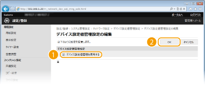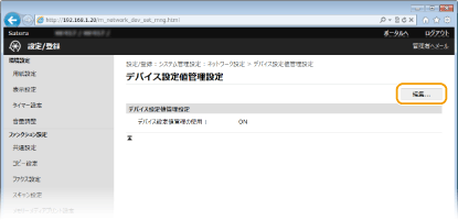 [デバイス設定値管理設定]をクリックする