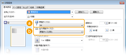 <ドライバー設定優先出力>を<ON>に設定すると、本体の用紙設定にかかわらず、プリンタードライバーで指定した給紙部から印刷することができます。ドライバー設定優先出力