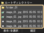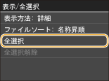 ![]() ![]() <表示/全選択>をタップする前に、ファイルを選択している場合は、選択しているファイルと同じ種類のみ選択できます。