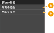 画像の内容に応じて、原稿の種類を選びます。<写真を優先>または<文字を優先>をタップします。
