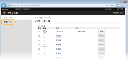 [削除]をクリックすると、登録済みの宛先を削除できます。