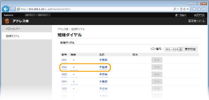 登録済みの[番号]、[種類]または[名称]をクリックすると、登録内容を編集できます。