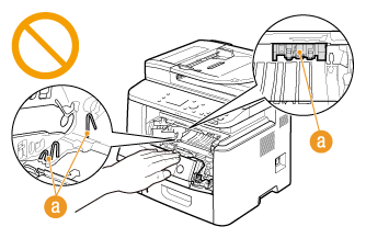 使用直後は、内部や排紙口が高温になります。また、連続印刷すると用紙が熱くなることがありますので、取り扱いには注意してください。やけどの原因になることがあります。