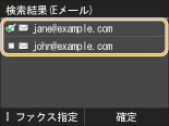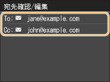 / をタップすると、宛先が順次表示されます。 を押すと、そのとき表示されている相手先を宛先から外すことができます。 |