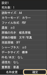 登録した設定を編集/削除する場合は、<スキャン>  <Eメール>/<I ファクス>/<ファイル>  <よく使う設定> <編集/削除> <編集>または<削除> の順に進み、以下の操作を行ってください。