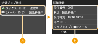 送信中の文書、順番待ちで待機中の文書などが一覧表示されます。
