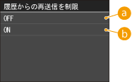 <送信機能の制限>  <履歴からの再送信を制限>の順に進む