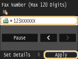 Enter the search target character string using the numeric keys, and tap <Apply>.