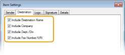 Displays items that are to be included on a cover sheet. To change the items to be included, click [Settings].