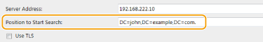 Specify the node in the directory information tree (DIT) that you want to start search from. Leaving the text box blank sets the machine to start search from an arbitrary node selected automatically.