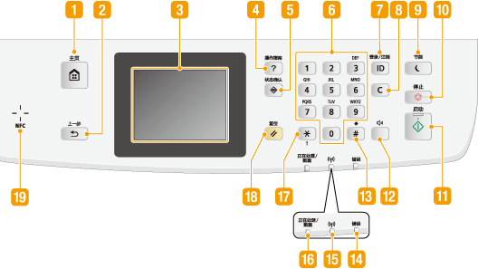 可以查看复印、传真和其他作业的进度以及错误状态。显示屏是触控面板,可让您通过直接触控屏幕来指定设置。