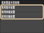 可以向 主页 画面增加常用功能的快捷键,如 <复印>、<传真> 和 <扫描>。例如,可以通过指定一系列设置(如“扫描文档两面,保存为高压缩 PDF 文件并通过电子邮件发送”)至单个按钮来提高任务的执行速度和效率。