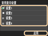 选中要在 主页 画面上显示的所有设置的复选框,然后轻触 <应用>。