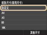 当装入自定义尺寸纸张时