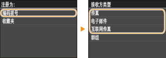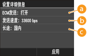 <传真设置> 指定 <ECM发送> 和 <发送速度>。但是,从 <地址簿> 指定的设置对于地址簿中注册的接收方的详细设置是启用的。 |