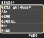 姓名、传真号码、电子邮件地址、组织名称及组织单位均可用作搜索接收方的条件。