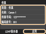 在接收方字段中输入 LDAP 服务器注册的所选用户的用户名、传真号码或电子邮件地址。