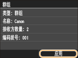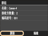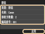 可以将多个接收方合并到群组中。对于一个群组,最多可以注册 299 个接收方(对于电子邮件为 100 个接收方)。注册了群组后,可以编辑或删除接收方。