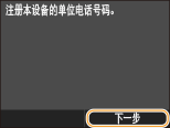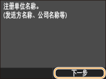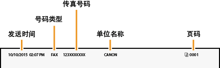 注册本机的传真号码和单位名称。此信息会打印在从本机发送的每个页面的顶部。