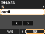 使用数字键输入单位名称(例如用户名或公司名称),然后轻触 <应用>。