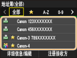 使用地址簿,可以通过从注册的接收方列表中选择来指定接收方,或可以通过含接收人姓名的接收方名称进行搜索来指定接收方。