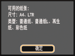 检查本机中已装入所显示尺寸和类型的纸张,然后轻触 <确定>。
