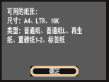 确认本机中已装入画面上所显示尺寸和类型的纸张,然后轻触 <确定>。