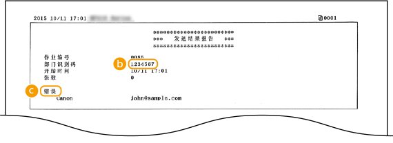 对于电子邮件,发送结果报告上显示本机和邮件服务器之间的传送结果,而不是本机和接收方地址之间的传送结果。即使传送失败,也不会打印三位数的错误代码。若要查看错误代码,请打印通信管理报告(