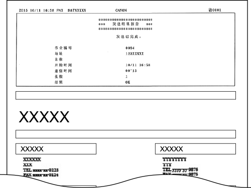 <传真发送结果报告> 或 <电子邮件/互联网传真/文件发送结果报告>