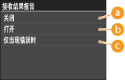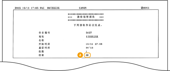 通过打印接收结果报告可检查已接收传真或 I-Fax 文档的日志。可在每次传送完成或者仅在发生了接收错误时打印报告。