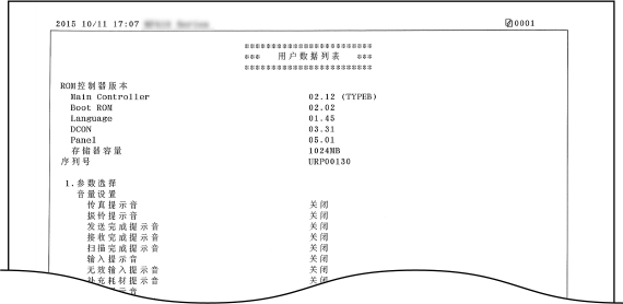 <用户数据列表> 不包括 <网络设置> 和 <系统管理设置> 的设置列表,以及 <传真设置> 的部分设置列表。若要检查所有设置项目(包括 <网络设置> 和 <系统管理设置>),请打印 <系统管理员数据列表>。