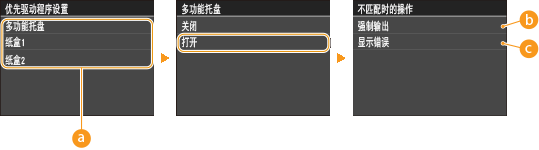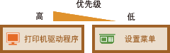设置优先级如果从打印机驱动程序和本机的操作面板指定打印设置,则从打印机驱动程序指定优先于从操作面板指定。操作面板的指定设置在一些具体情况下生效,例如执行 PCL 打印和从 UNIX 或其他不支持打印机驱动程序的操作系统打印时。