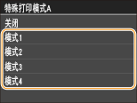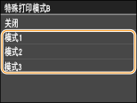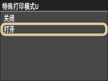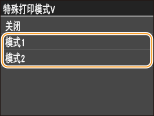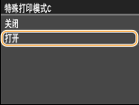 将 <特殊打印模式V>、<特殊打印模式C> 或 <特殊打印模式D> 设置为 <打开> 禁用该项目。