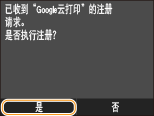 也可从移动设备或 Google Chrome* 注册本机。本机的显示屏将在注册完成前显示以下确认画面。按下 <是> 完成注册。