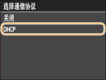 轻触 <关闭>。如果在这项服务不可用时选择 <DHCP>,本机将会浪费时间和通信资源来搜索这项服务的网络。