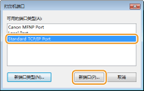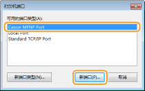 在 [可用的端口类型] 中选择 [Canon MFNP Port],然后单击 [新端口]。