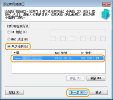 选择 [自动检测],当检测到本机时选择本机,然后单击 [下一步]。