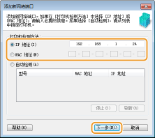 单击 [刷新]。如果问题仍然存在,请选择 [IP 地址] 或 [MAC 地址],输入本机的 IP 地址或 MAC 地址 (查看网络设置),然后单击 [下一步]。