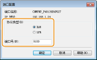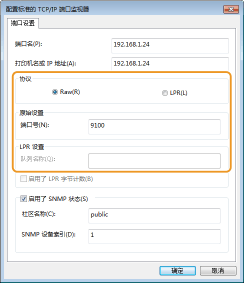 在 [协议类型] 下,选择 [RAW] 或 [LPR],然后更改 [端口号]。