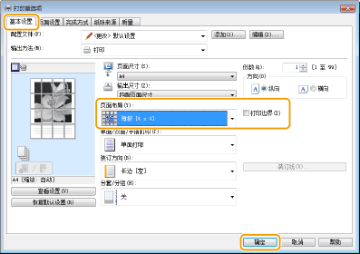 可以将文档中的一页打印在多页上。例如,如果将一页A4尺寸的文档放大九倍,打印该文档并拼贴在一起后,可以得到一幅由 3x3 个A4尺寸打印件组成的海报。