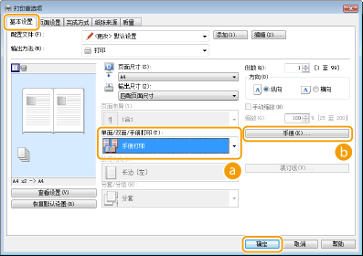 对于某些尺寸和类型的纸张,可能无法使用手册打印。可用于双面打印的纸张也可用于手册打印。请参阅纸张。