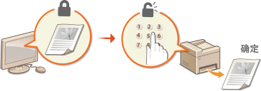 通过在从计算机打印时为文档设置 PIN,文档将保存在本机内存中,直到在本机的操作面板上输入正确的 PIN 时才会打印。此功能称为“安全打印”,由 PIN 保护的文档则称为“加密文档”。使用安全打印,可以避免机密文档处于无人处理的情况。使用此功能前,需要完成一些步骤。