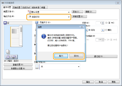 在 [输出方法:] 中选择 [保密打印]。