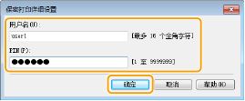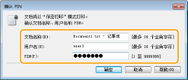 输入 [文档名称:]、[用户名:] 和 [PIN:],然后单击 [确定]。