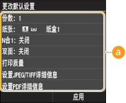 时所显示的设置即为默认设置。如果更改这些默认设置以符合您频繁执行的操作,可以省去每次打印时指定相同设置的麻烦。