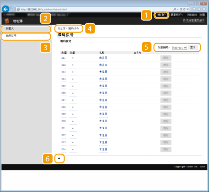 指定在页面上显示的编码拨号号码范围。无法显示收藏夹中的列表编号。