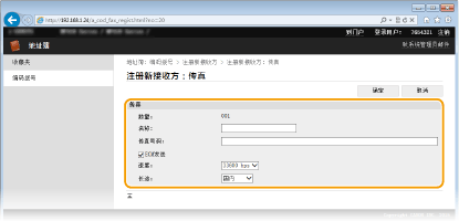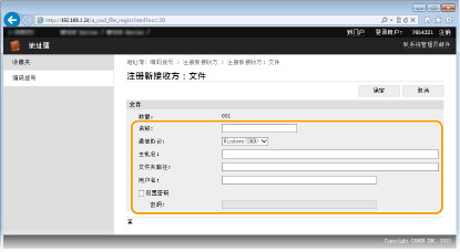 可使用计算机注册本机地址簿中的接收方并且编辑已注册接收方的信息。指定此处的共享文件夹或 FTP 服务器接收方。